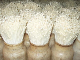 Flammulina velutipes, known as Enokitake, golden needle mushroom and lily mushroom, is is a long, thin white mushroom used in East Asian cuisine (such as that of China, Japan, Vietnam and Korea).
